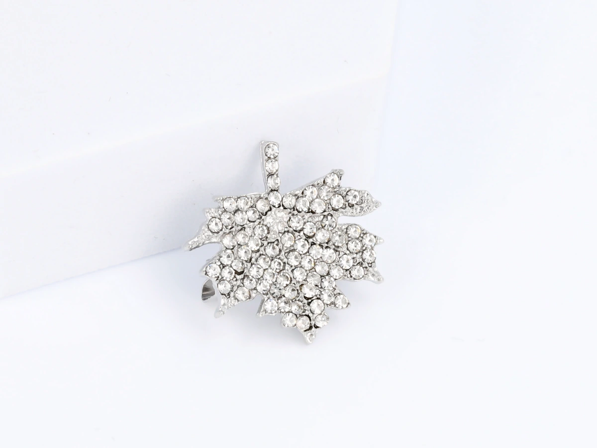 Broszka ozdobna listek z cyrkoniami.