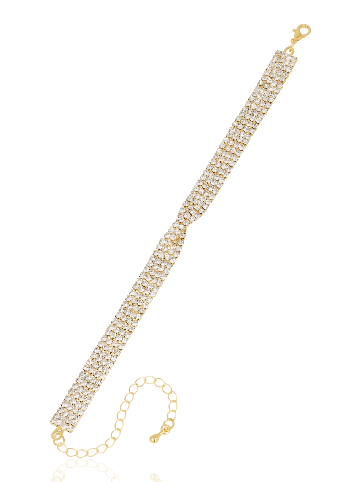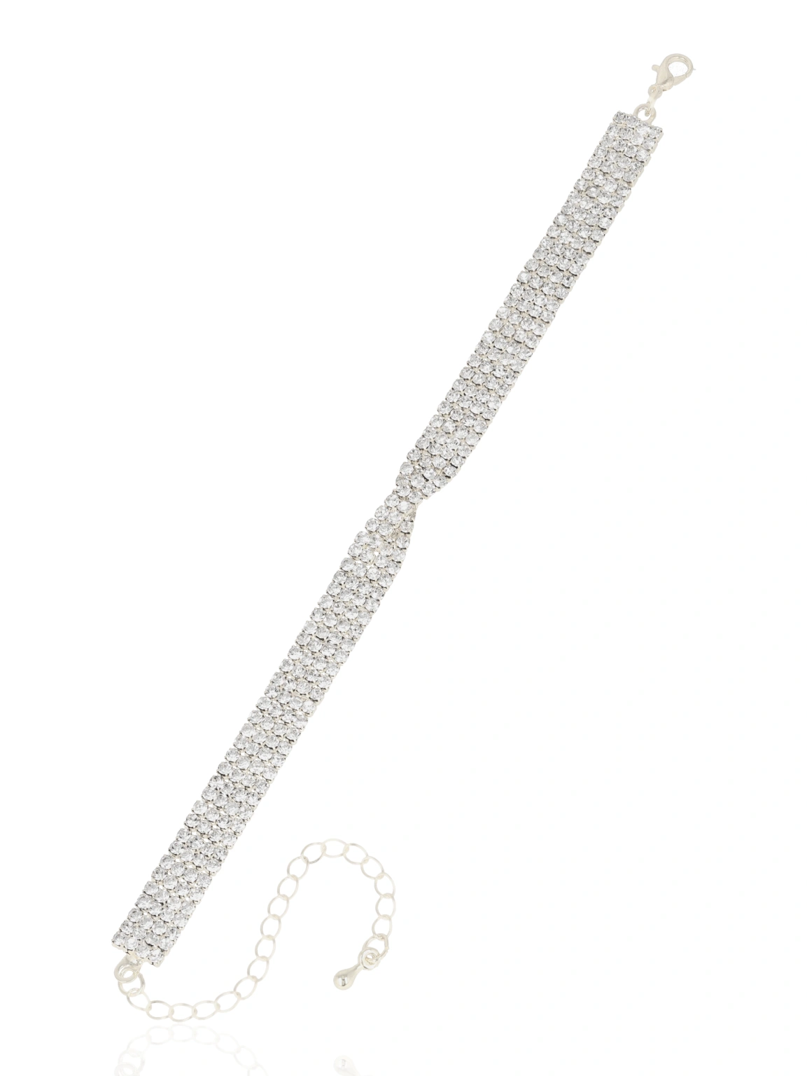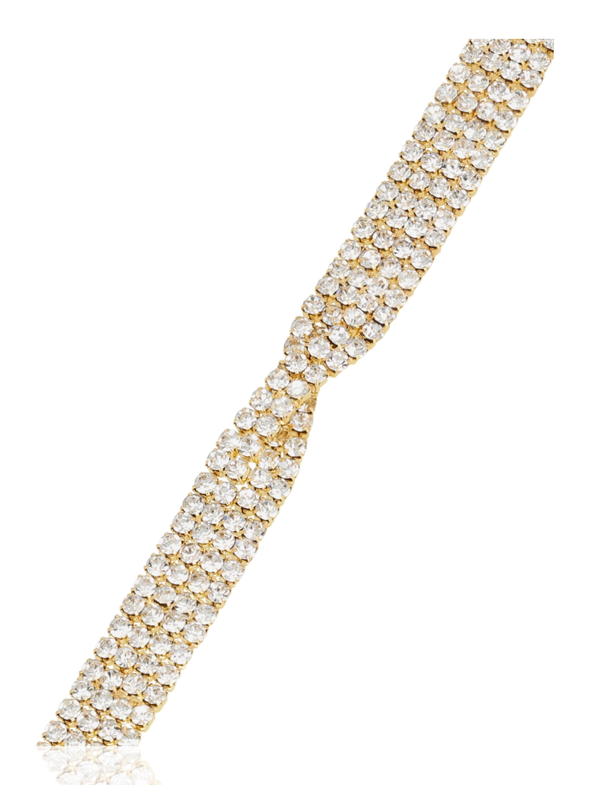 Ponadczasowa bransoletka o gęstym splocie cyrkonii, z subtelnym skrętem w centralnej części, który dodaje całości eleganckiego charakteru. Jej klasyczna forma w połączeniu z intensywnym blaskiem sprawia, że idealnie komponuje się zarówno z wieczorową kreacją, jak i bardziej formalnym strojem.