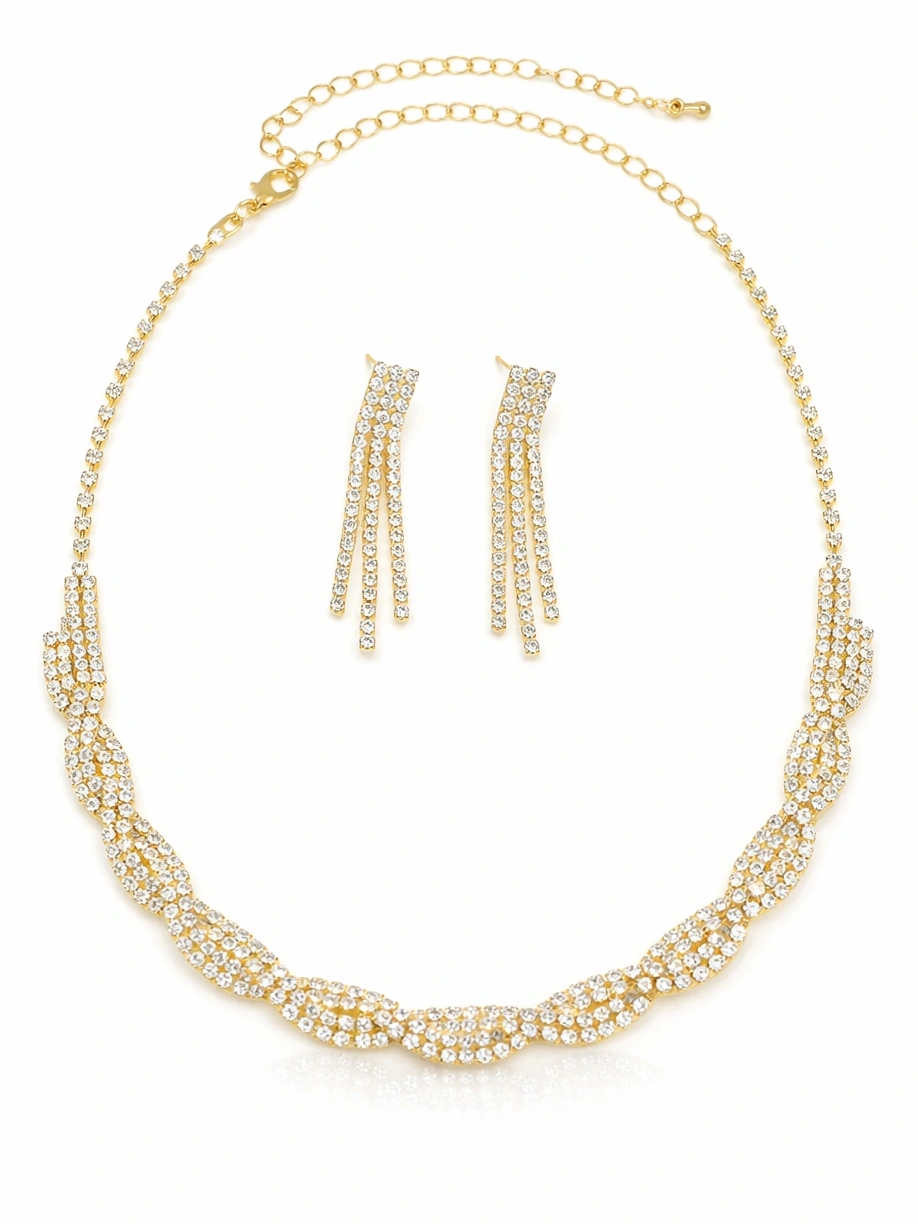 ✨ Komplet z plecionym naszyjnikiem i długimi kolczykami – styl glamour