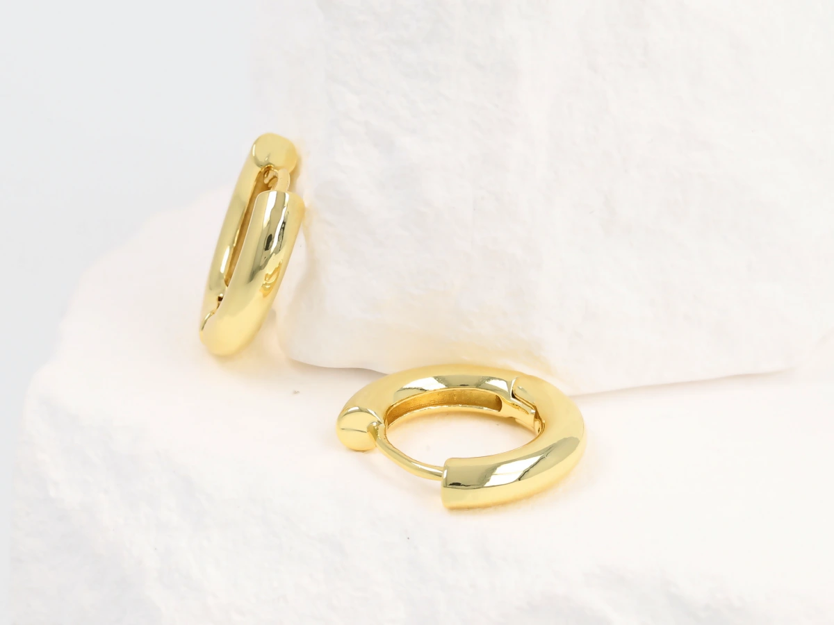Kolczyki miedziane kółka rurki pozłacane 14 k.