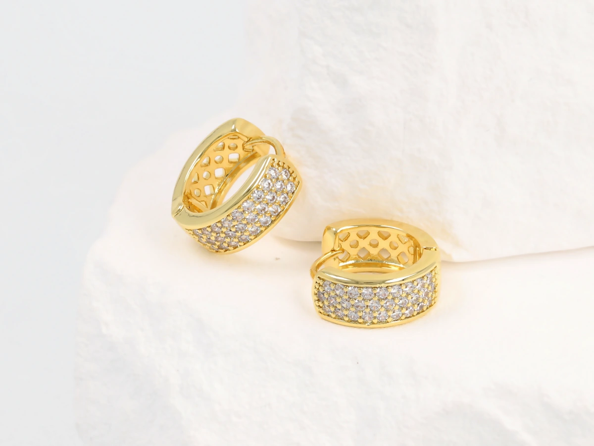 Kolczyki miedziane kółka pozłacane 14 k z cyrkoniami.