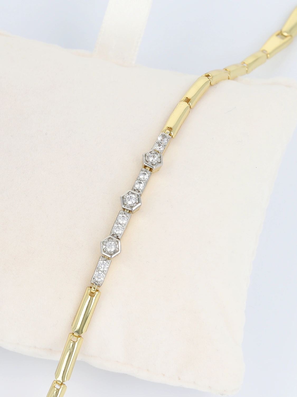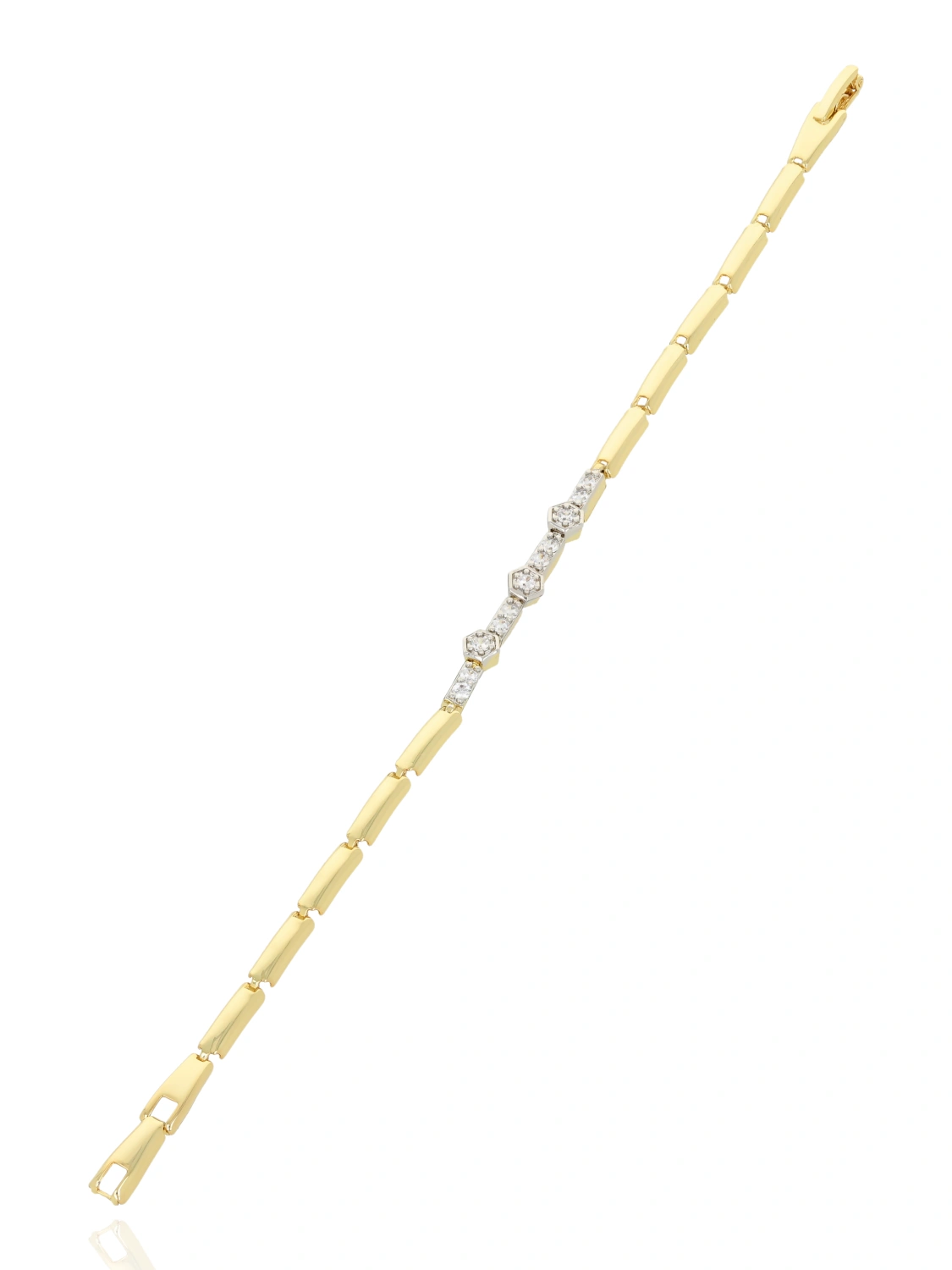 Bransoleta damska włoskie złoto z geometrycznym pasmem cyrkonii