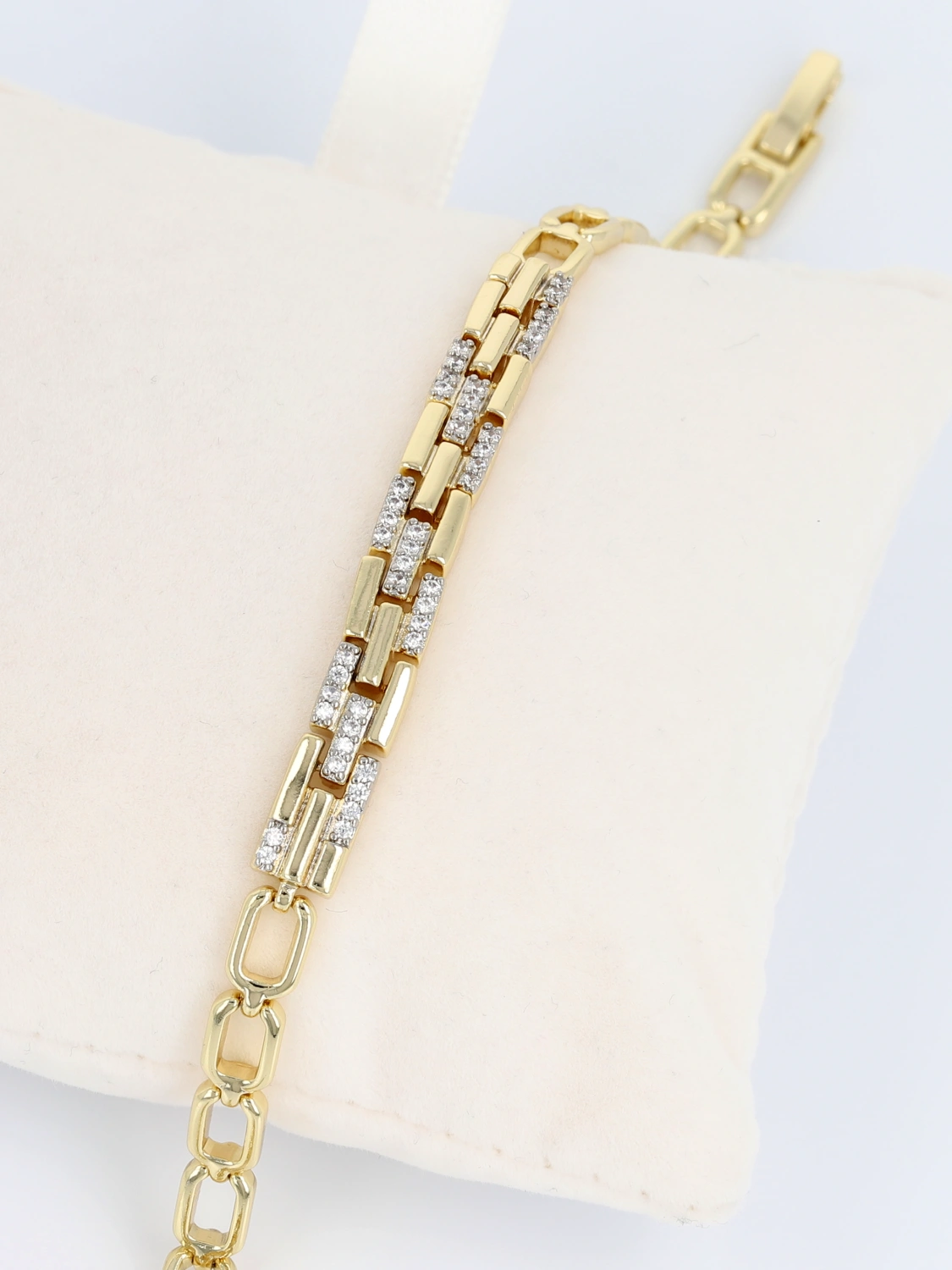 Bransoleta damska włoskie złoto z podwójnym pasmem cyrkonii