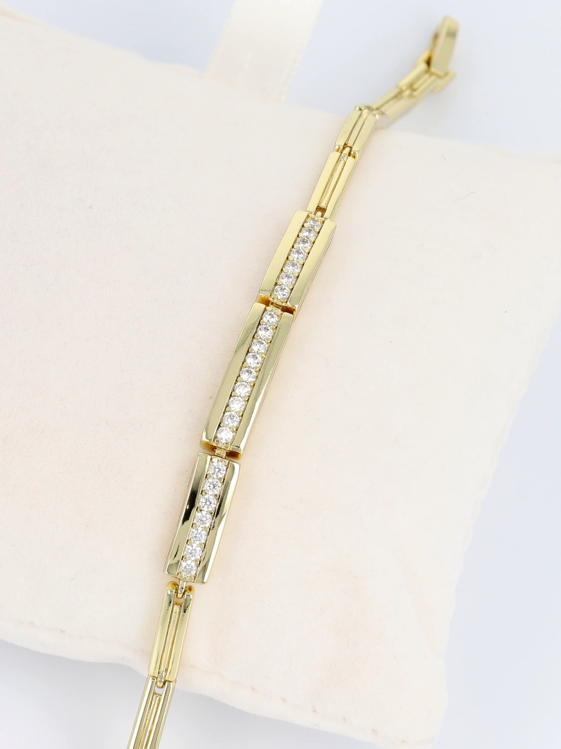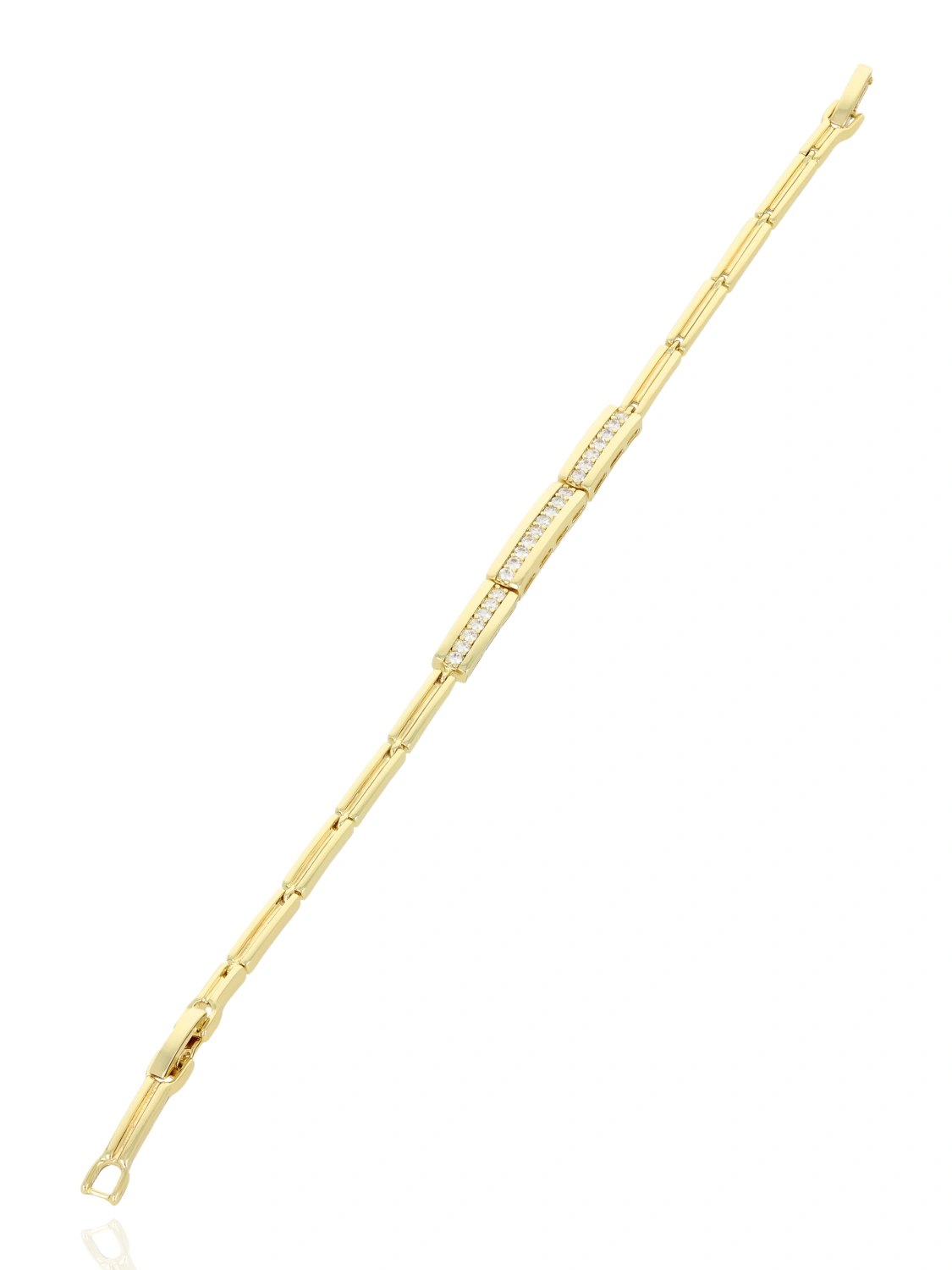 Bransoleta damska włoskie złoto z potrójną listwą cyrkonii