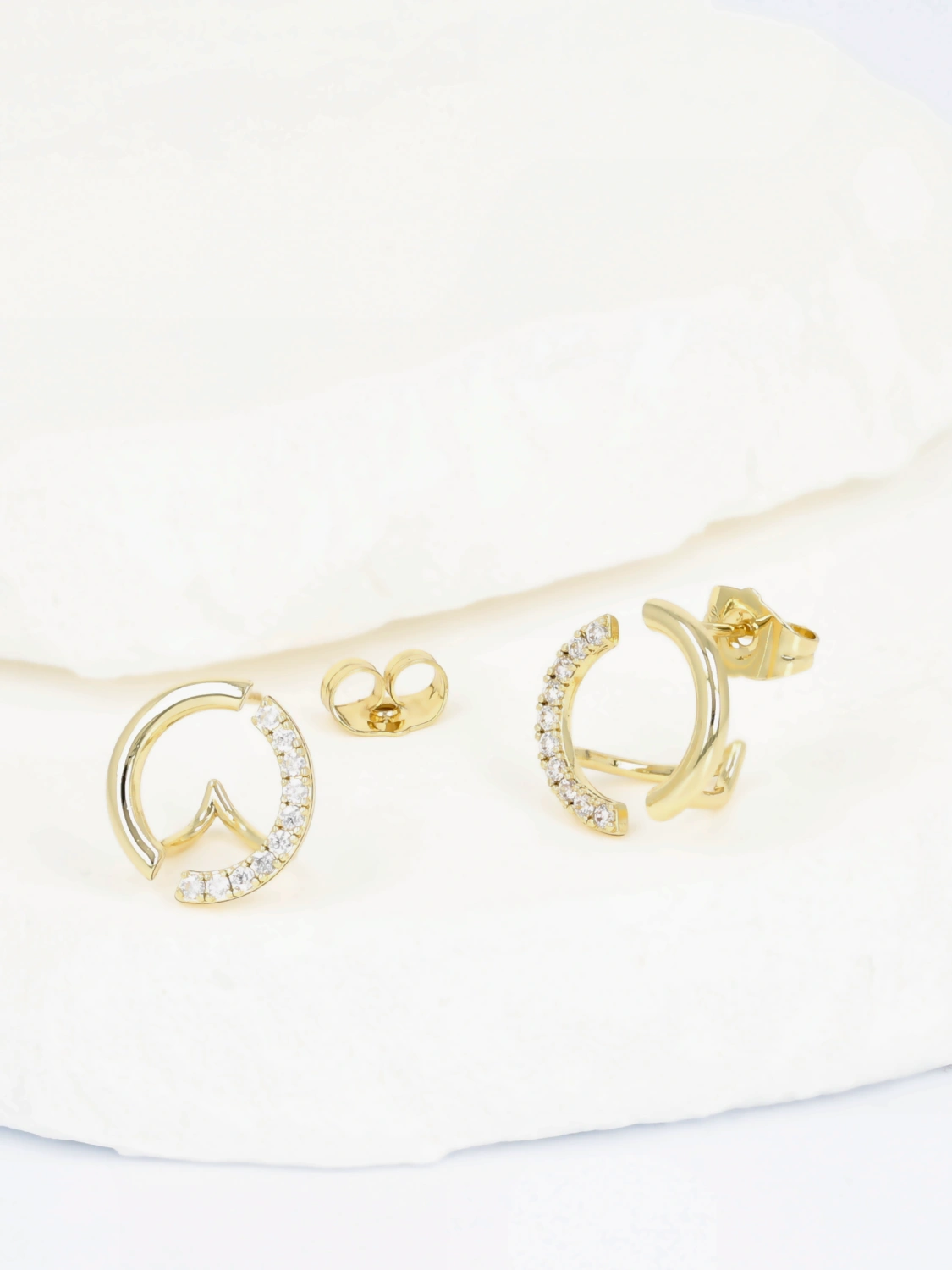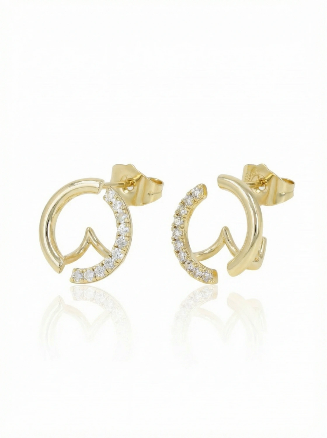 Nowoczesne kolczyki o otwartej formie łączą subtelny kształt serca z delikatnym łukiem wysadzanym drobnymi cyrkoniami, tworząc harmonijną i lekką kompozycję. Kolczyki z włoskiego złota przyciągają uwagę eleganckim połyskiem oraz starannym wykończeniem, które podkreśla ich unikalny design. To wyjątkowe kolczyki damskie, idealne jako kolczyki romantyczne na prezent lub stylowe kolczyki na co dzień, dodające blasku każdej stylizacji.