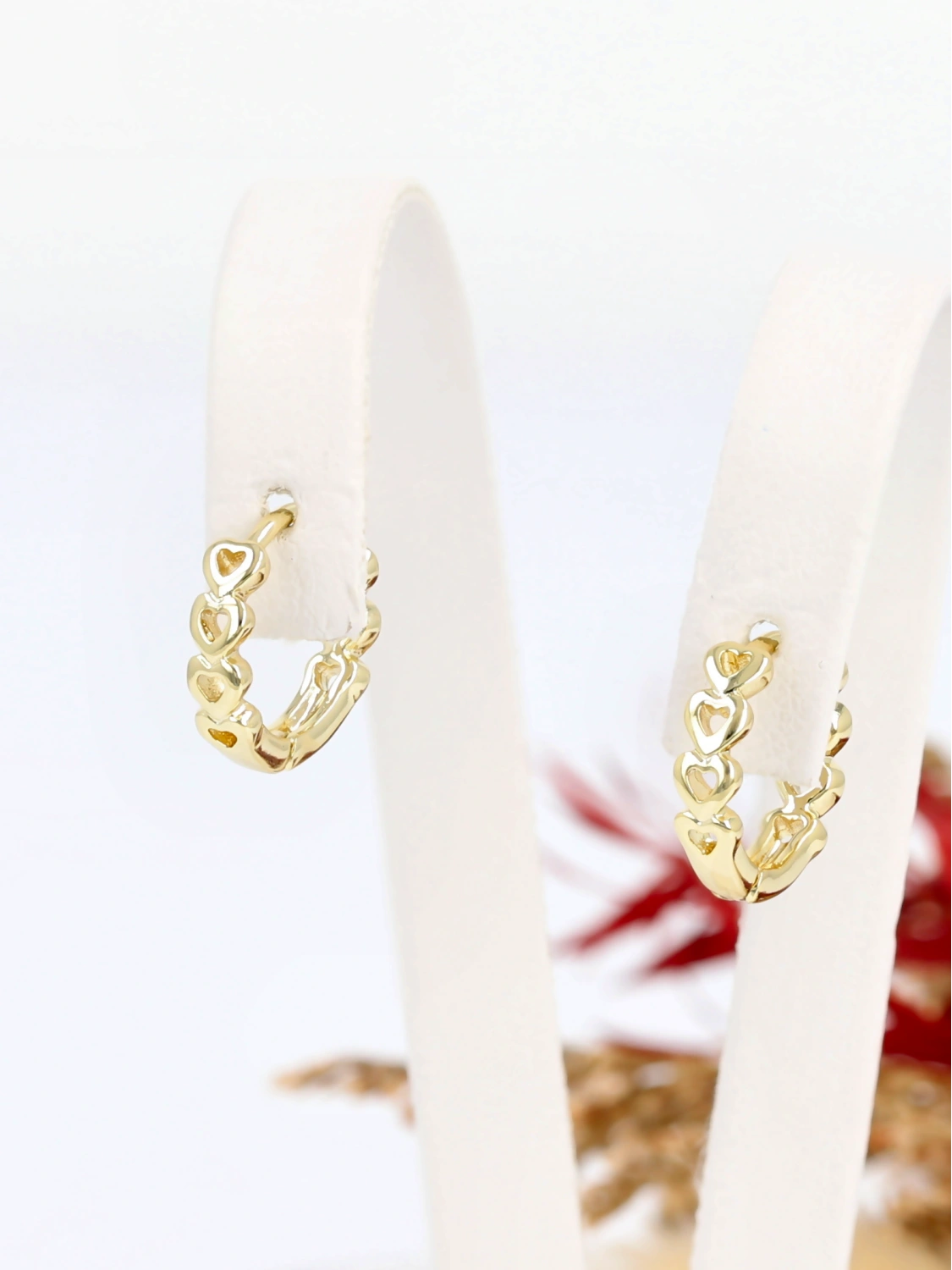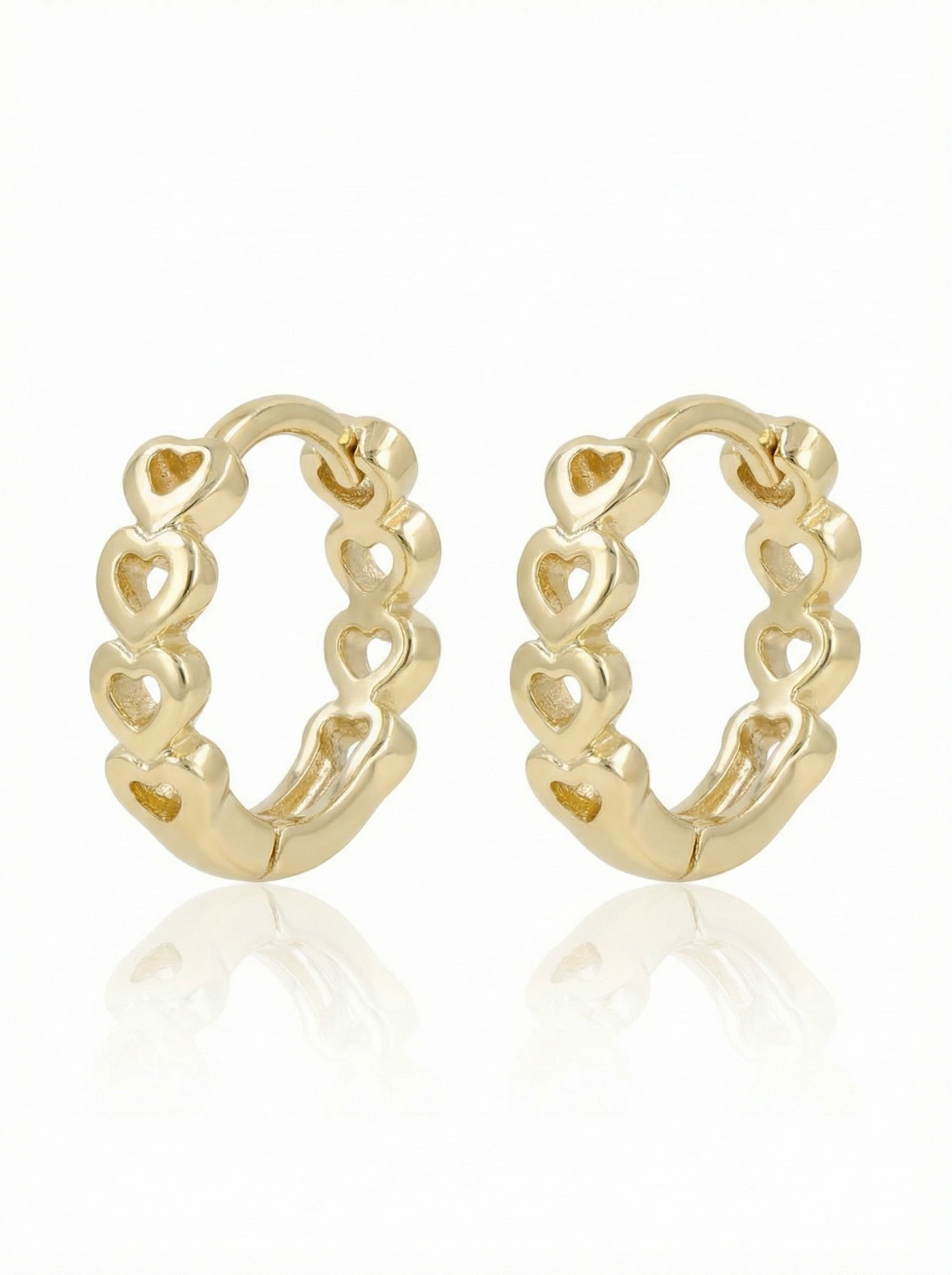 Urocze kolczyki w formie delikatnej obręczy zostały ozdobione motywem ażurowych serc, które nadają im lekkości i romantycznego charakteru. Kolczyki z włoskiego złota zachwycają ciepłym blaskiem oraz subtelnym wykończeniem, które pięknie podkreśla ich wyjątkowy design. Te kolczyki damskie świetnie sprawdzą się jako kolczyki na co dzień, a także jako stylowy akcent w bardziej kobiecych i eleganckich stylizacjach.