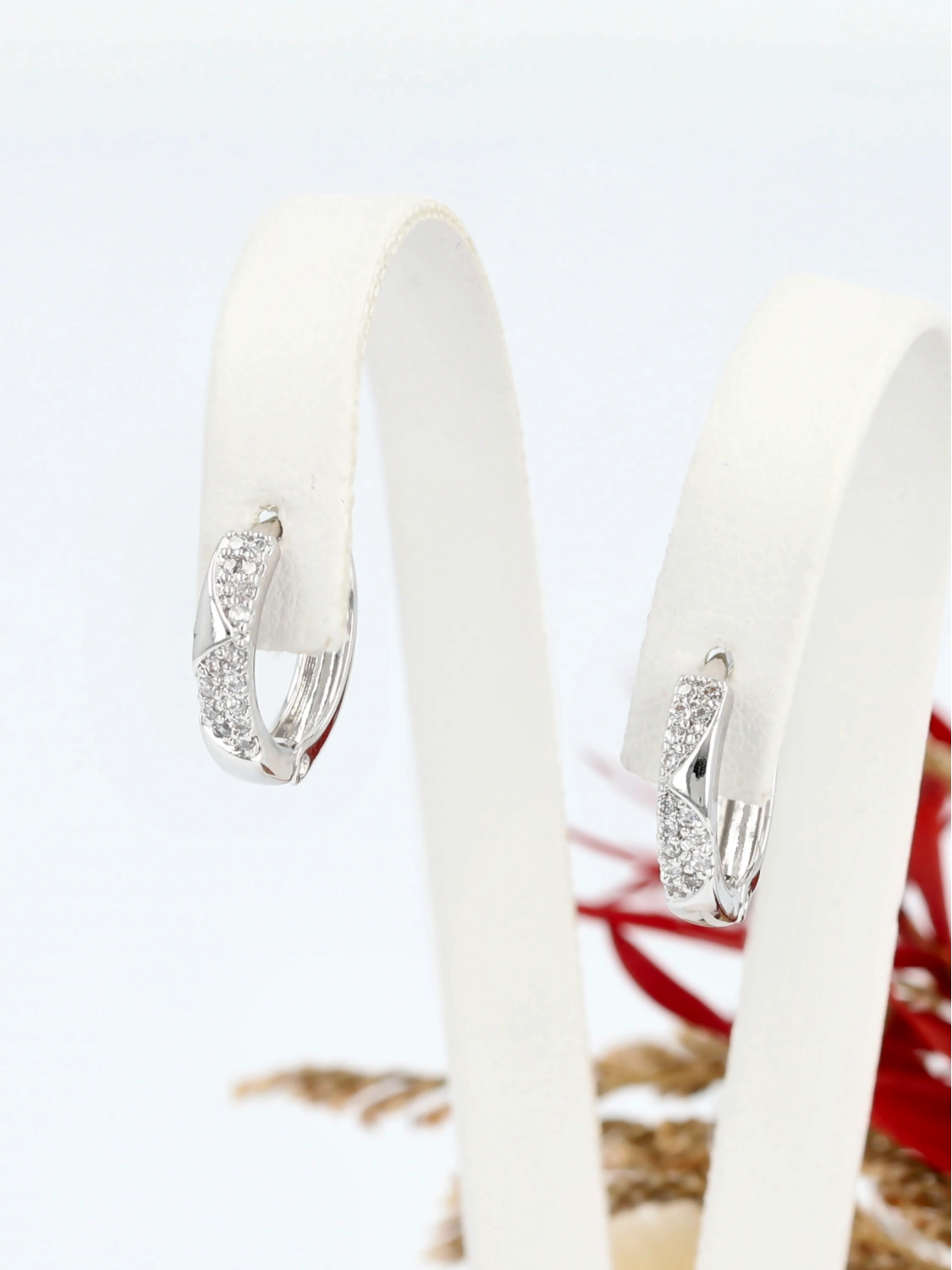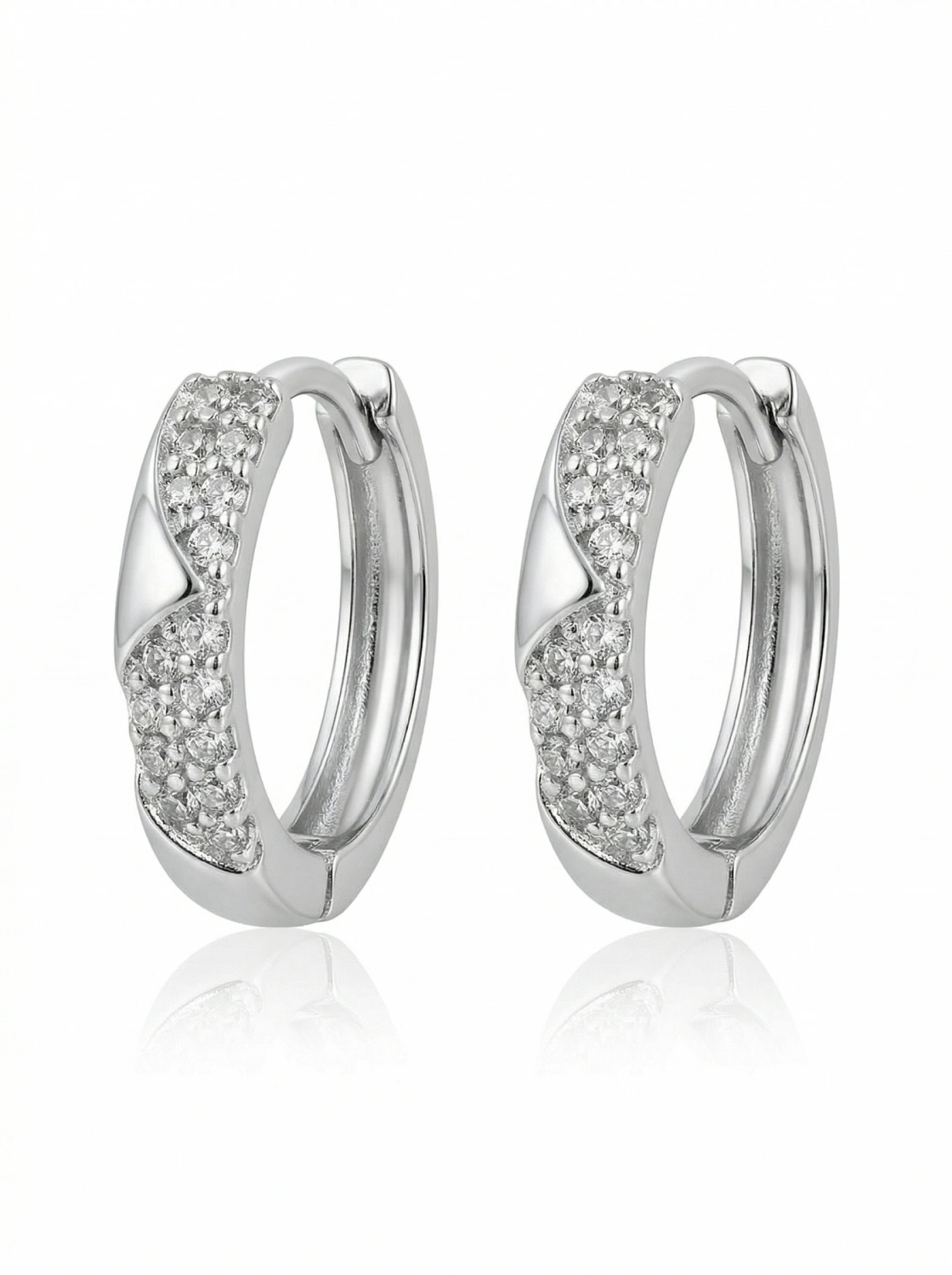Eleganckie kolczyki rodowane z subtelną linią połyskujących cyrkonii tworzą efekt delikatnej, świetlistej fali. Kolczyki w kolorze srebra w chłodnej odsłonie przyciągają uwagę wyważonym połączeniem gładkiej powierzchni i błyszczącego detalu. Te kolczyki damskie doskonale podkreślają styl, dodając mu lekkości i nowoczesnego charakteru. To kolczyki eleganckie, które sprawdzą się zarówno na co dzień, jak i jako uzupełnienie bardziej wyjściowych stylizacji.
