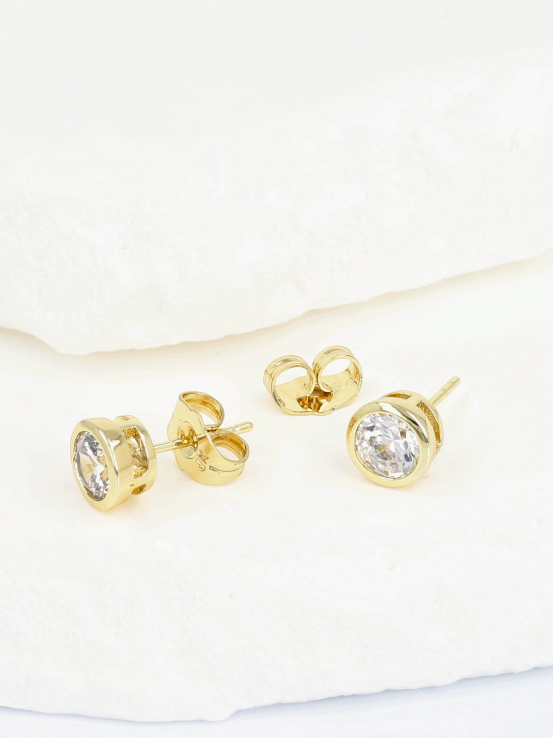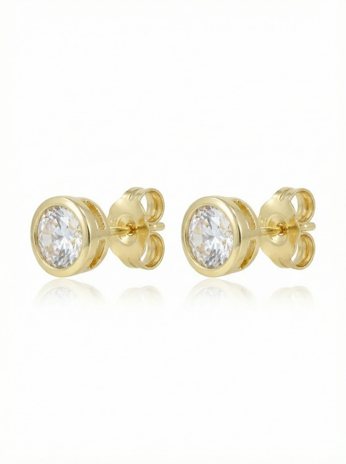 Nowoczesne kolczyki sztyfty z cyrkonią osadzoną w pełnej oprawie typu bezel to połączenie minimalizmu i elegancji. Gładka, okrągła ramka subtelnie otacza kamień, podkreślając jego blask i nadając całości bardziej nowoczesny, wyrafinowany charakter.