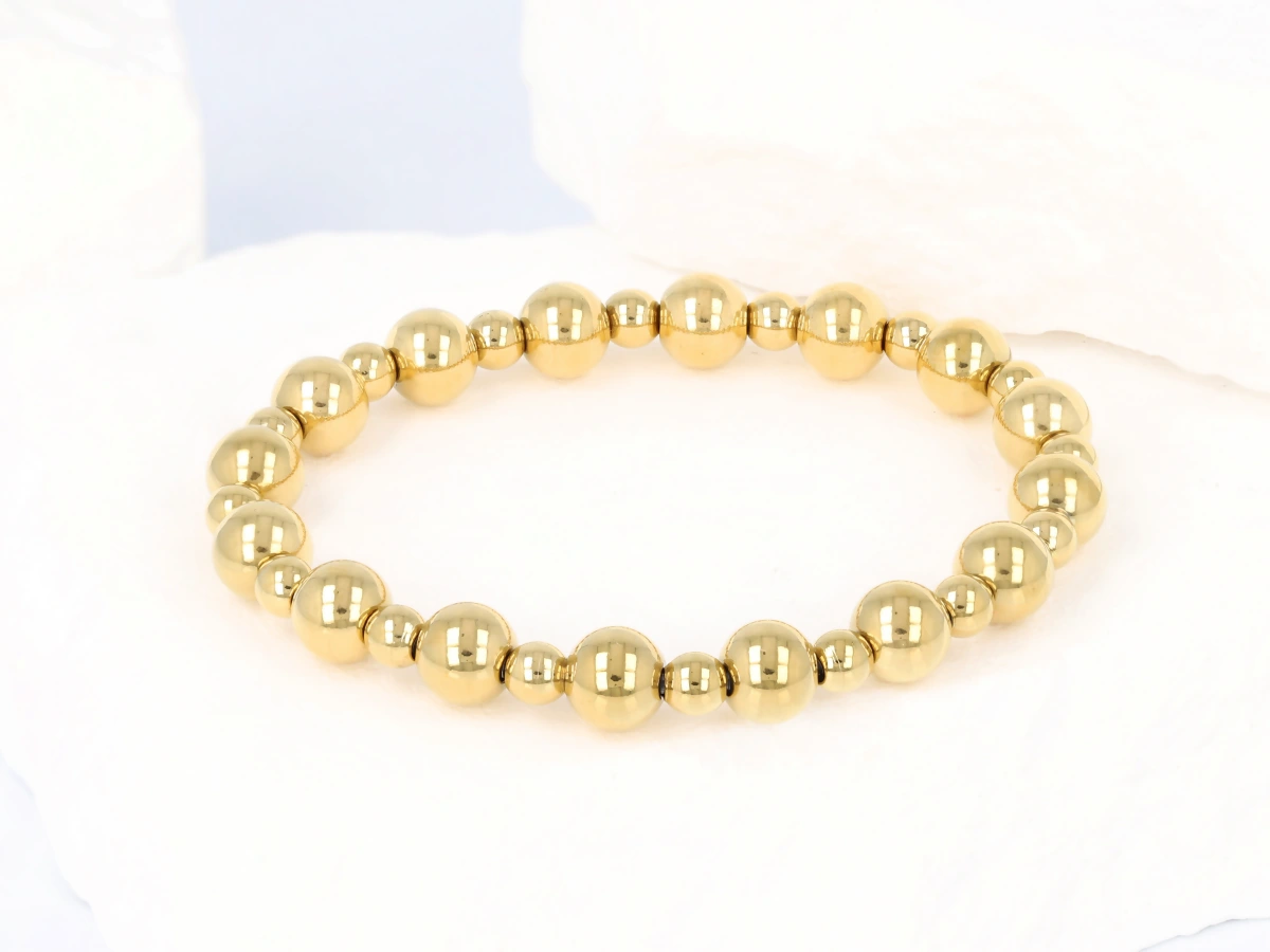 Bransoleta ze stali szlachetnej 316 L, pozłacane kulki na gumie.