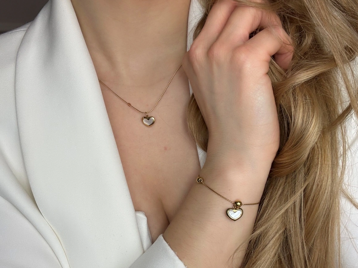 Bransoleta serce masa perłowa