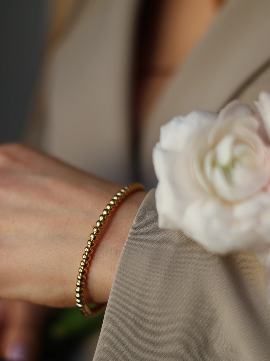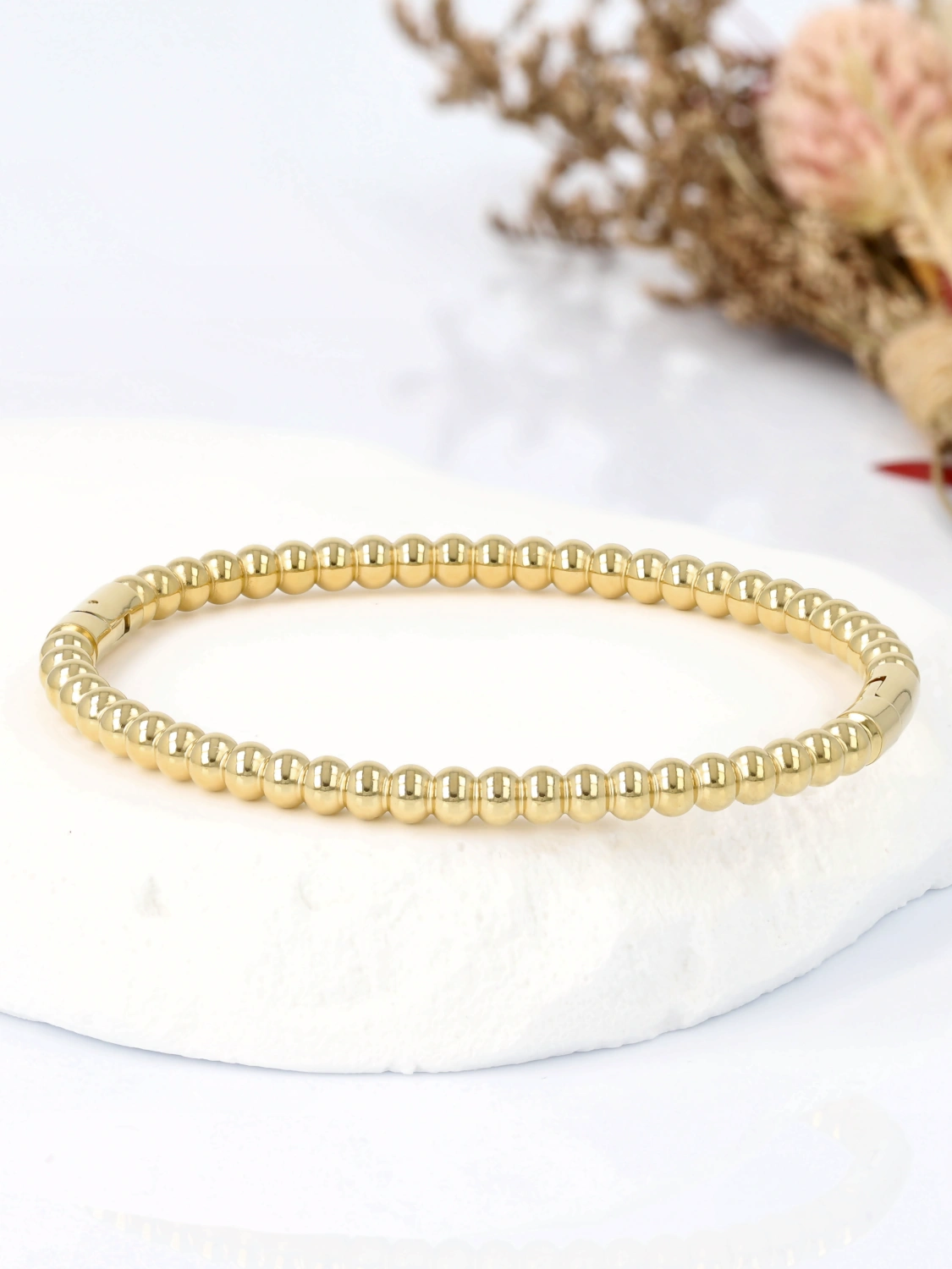 Bransoleta sztywna klasyczna elegancka obręcz wykonana z pozłacanych kulek ze stali szlachetnej 316L.