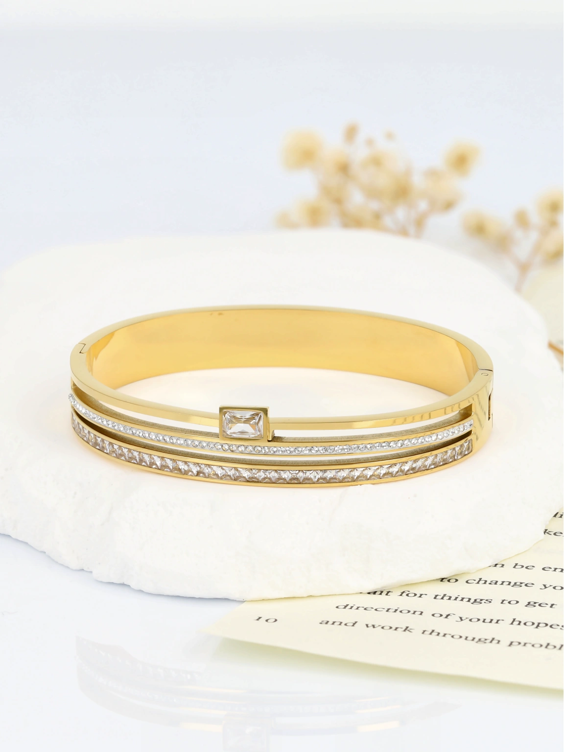 Bransoletka wykonana ze stali szlachetnej 316L, pozłacana 14K, trwała i odporna na codzienne użytkowanie.