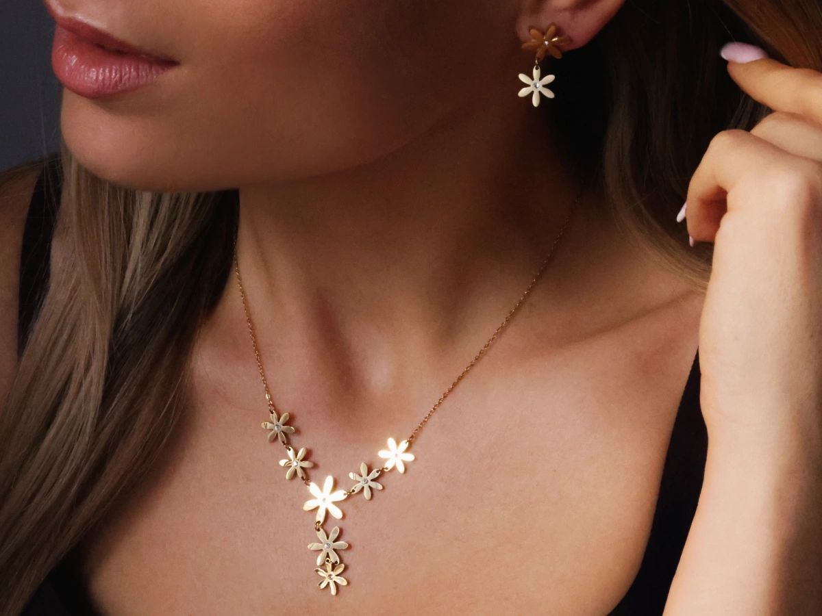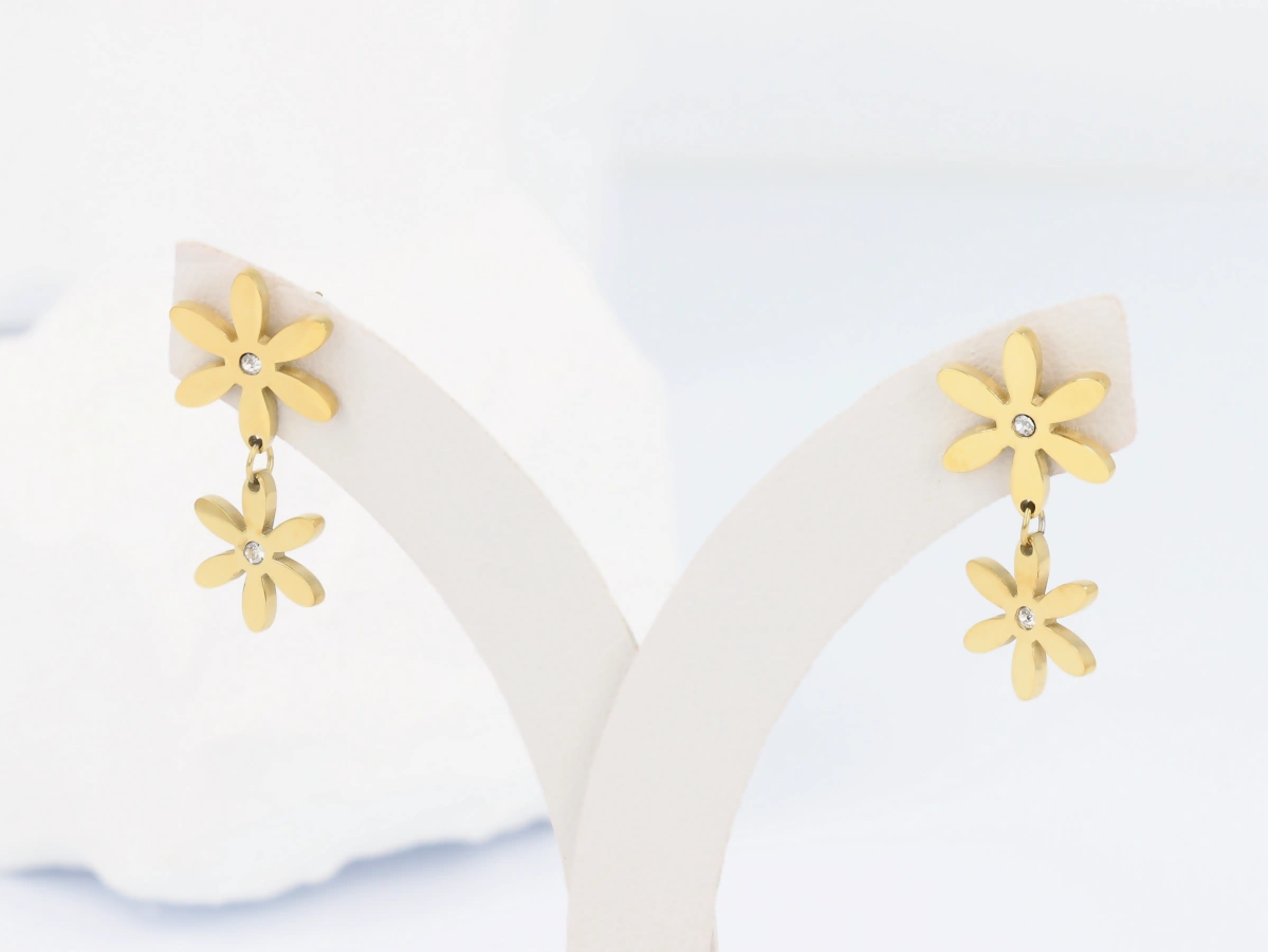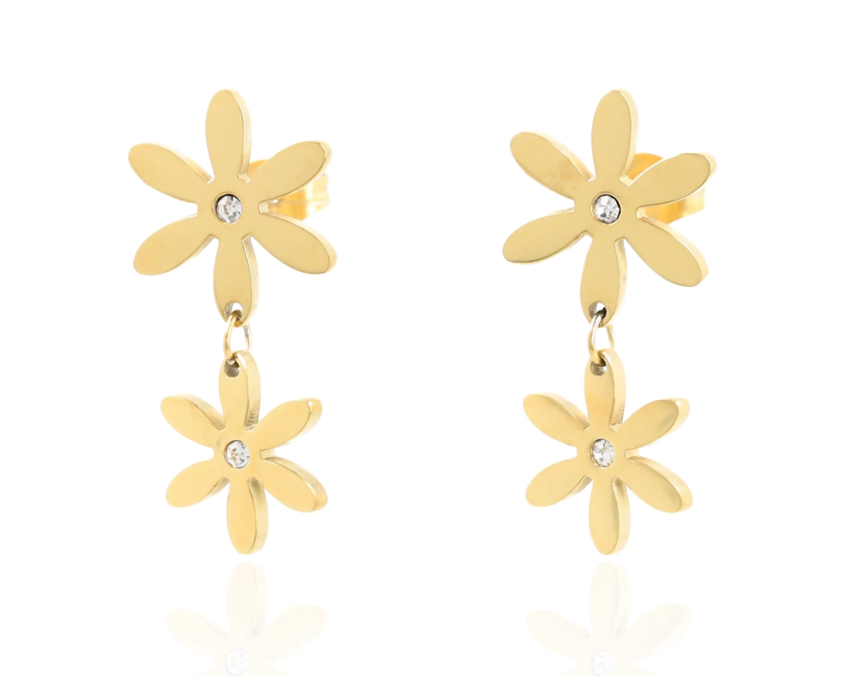 Kolczyki pozłacane kwiatki z cyrkonią, ze stali szlachetnej 316 L.