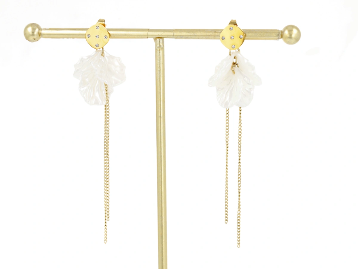 Kolczyki pozłacane muszelki z cyrkoniami, ze stali szlachetnej 316 L.