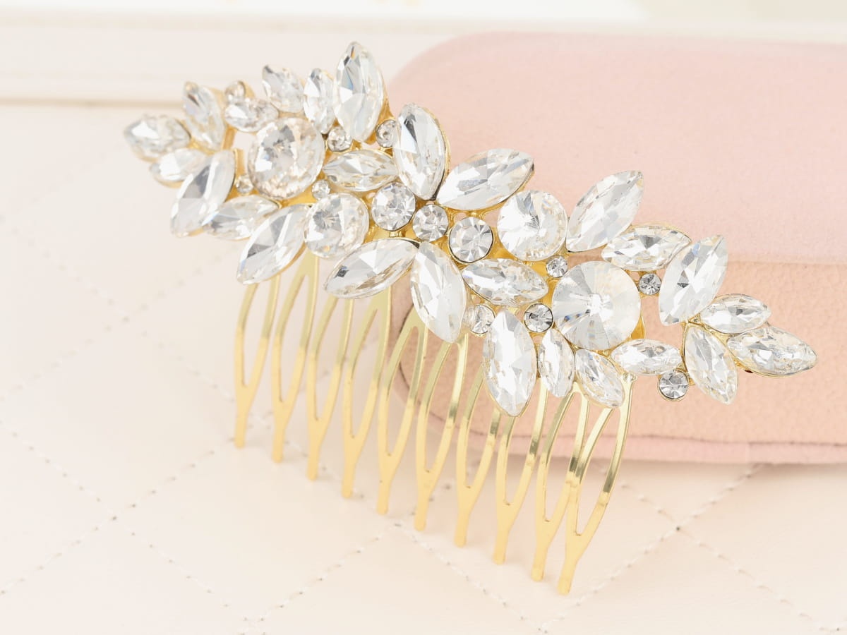 Grzebień z kryształami i cyrkoniami.